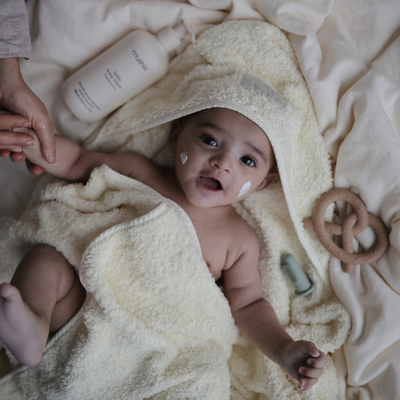 Artikelnummer: 0810052464695Kalmeer en hydrateer de huid van je baby met Mushie's Baby Body Lotion. Onze formule, op basis van natuurlijke ingrediënten, beschermt en hydrateert de droge huid en maakt je kleintje superzacht van top tot teen.