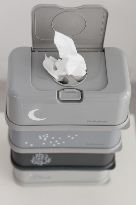 De funkybox is een kunststof boxje waar je vochtige doekjes in bewaart. Het boxje is superhandig in gebruik, gaat makkelijk open en dicht en de doekjes drogen nooit uit.Met de funkybox style je je babykamer tot in details!