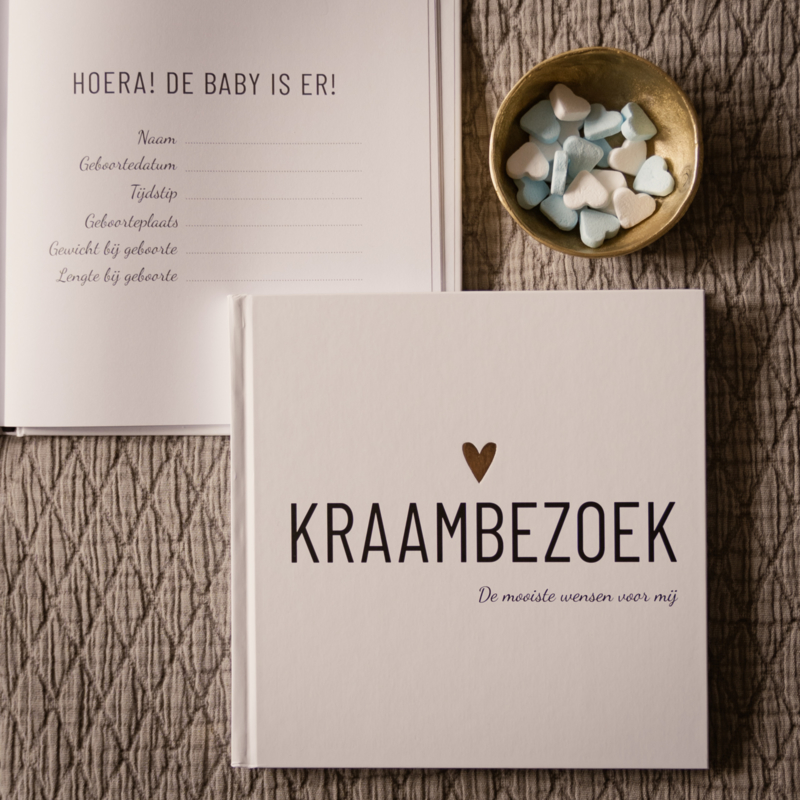 In this beautiful maternity visit book from Lifestyle2Love, the maternity visit can answer a number of questions and they give a wish for the baby. This maternity visit book has a hardcover cover with gold foil hearts. The book also has a black reading ribbon so that you always know where to fill in the maternity visit.