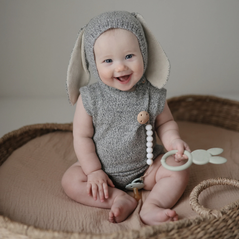Help soothe your baby's irritated gums with our line of teethers. Made from 100% non-toxic, food-grade silicone, and designed to be easy to grasp by tiny fingers, our bunny teethers are safe for your baby to use. Their playful design and sophisticated colors make them a stylish addition to your home.